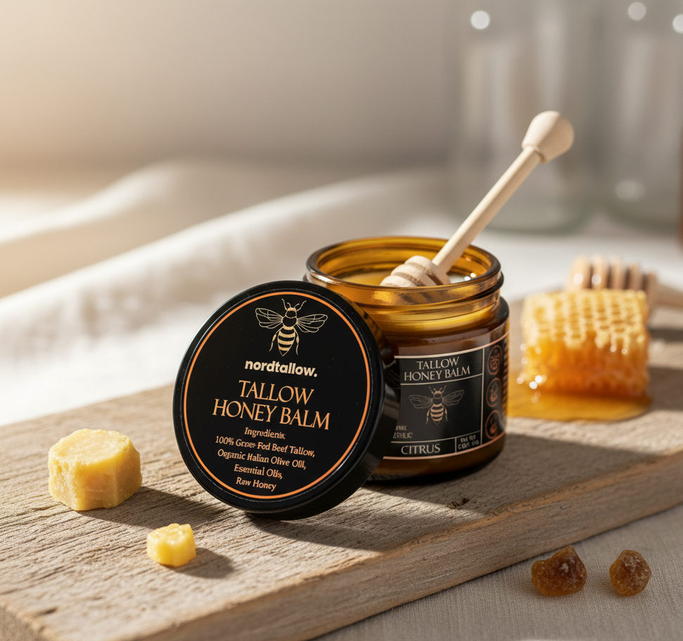 Tillverkad av 100 % gräsbetad talg – ger djup återfuktning, lugnar huden och stärker din hudbarriär utan kemikalier.