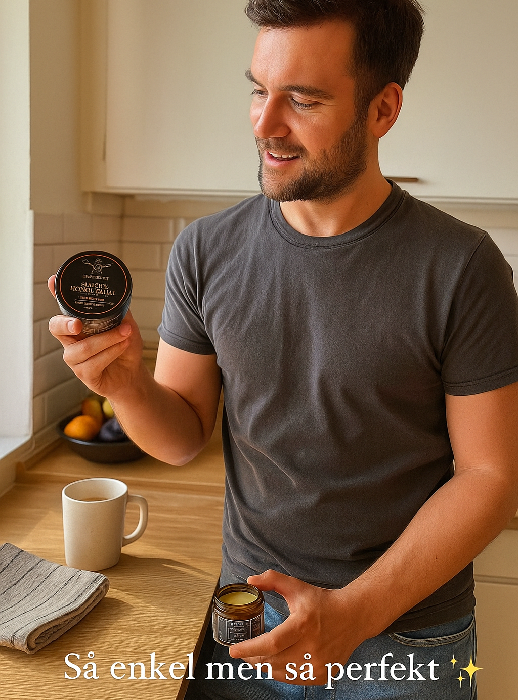 I århundraden har talg använts för att ge näring och skydda huden – den har en liknande struktur som mänskliga hudoljor, vilket gör den naturligt effektiv. Vi kombinerar den med rå honungs återfuktande och läkande egenskaper och olivoljans antioxidanta stöd. Resultatet? Slät, mjuk hud med synlig lyster – inga tunga lotioner, ingen överdos av syntetiska dofter.